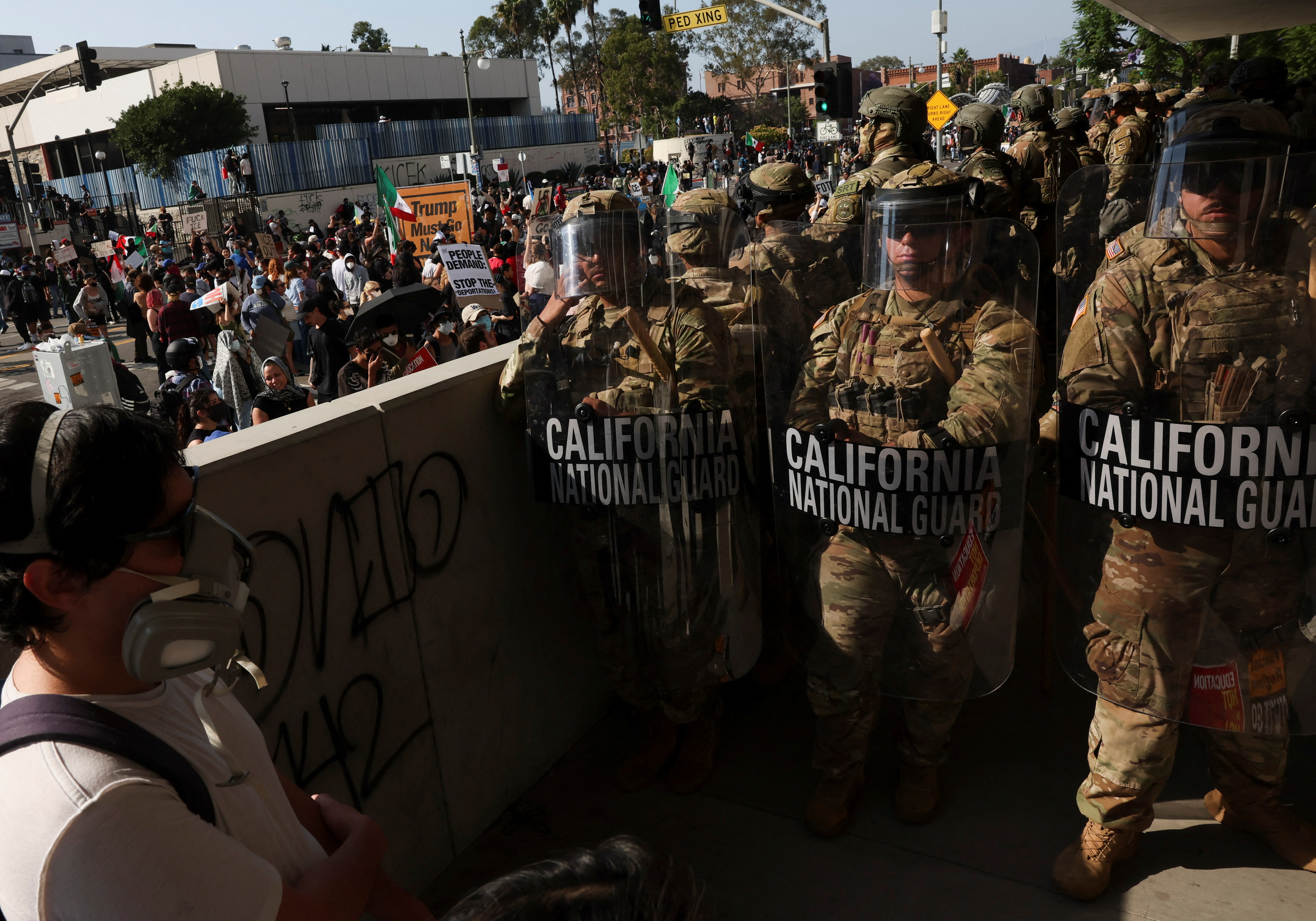 基於川普在競選期間強調的要「封鎖邊境,阻止非法移民入侵」的政見,近幾個月來,聯邦政府一直在全美大力逮捕、遣返非法滯留的外籍人士,因此引發的緊張局面亦不斷加劇。移民與海關執法局(ICE)在南加州掃蕩非法移民的行動,於6月6日起連續兩天在大洛杉磯地區多處地點與支持「無證移民」的抗議群眾爆發嚴重衝突,ICE車輛被砸、人員被圍困。ICE向洛杉磯市警求援,卻受到冷淡對待,稱警察拖了兩小時才到,洛杉磯警局反駁說因為交通阻塞,是40分鐘後抵達。但群眾卻沒有理會市警「非法集會」的驅離命令,繼續聚集,以致警民衝突,並發生打砸搶事件。加州州長紐森與洛杉磯市長巴斯批評ICE的搜捕行動殘忍、過度執法,刺激民心。川普總統則於7日晚下令調動2,000名加州國民兵進駐洛杉磯,以保護聯邦執法人員與聯邦資產的安全及恢復社會秩序,說「如果我們不這樣做,洛杉磯就會被徹底摧毀。」聯邦與州的緊張局勢更形升高。