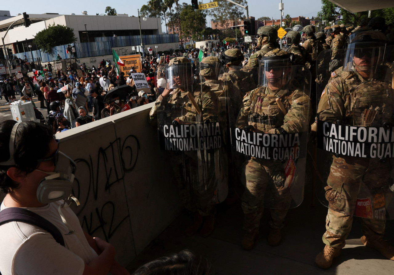22位民主黨籍州長8日發表聯合聲明,強烈譴責川普部署國民兵的決定是濫權。紐森9日向聯邦法院提出訴訟,要求取消川普的命令。12日加州北區聯邦地區法院認為川普的命令「違法」,發出禁制令,規定加州國民兵的管轄權需在13日交回紐森州長。但當日晚間,美國第九巡迴上訴法院暫停了這禁制令。至截稿時,已有4,100名國民兵及700名海軍陸戰隊士兵部署在洛杉磯。這爭議最後應會鬧到最高法院去解決。然而總統是否有權調動各州的國民兵?其實根據美國法典第10及第32條款,明確規定了國民兵的管轄權:平時歸州長管,處理包括天災、瘟疫、動亂等州內事件;但有必要「保衛美國」時,總統可以「聯邦化(Federalize)」各州國民兵,下令動員他們去國內或國外任何地方,包括投入戰鬥,任務時間可以由數月至一年。許多海外戰事,包括在阿富汗、伊拉克、敘利亞等地,過去都曾經派國民兵輪調參戰。上次未經州長同意而動用國民兵是在1965年,當時總統詹森派兵前往阿拉巴馬州保護一場民權遊行。2020年6月當美國正面臨「喬治‧弗洛伊德動亂」時,川普就調動過11州的國民兵進入華盛頓特區,保護聯邦人員與資產安全。所以根本不是川普是否有權調動,問題是他動用的時機是否合法。