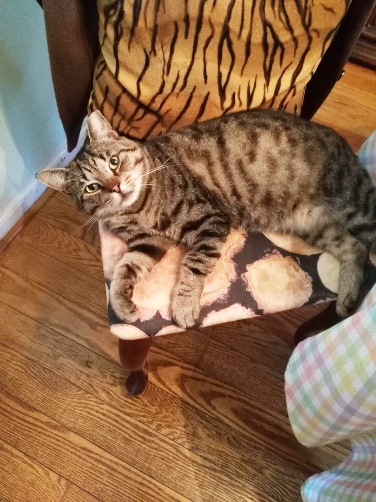 四年前瑪菲還是流浪街頭的骯髒小貓,現在成了我家光鮮亮麗的小胖寵兒。每天早上八時左右,牠便在房門外等候我的起床,若我還是賴床,牠便大力地衝撞房門闖進來,跳到床上把我弄醒;用牠的濕鼻子貼在我的額上,用牠柔軟的前足摸着我的臉,在牠軟硬兼施之下我只有就範,這就是貓奴的典範。