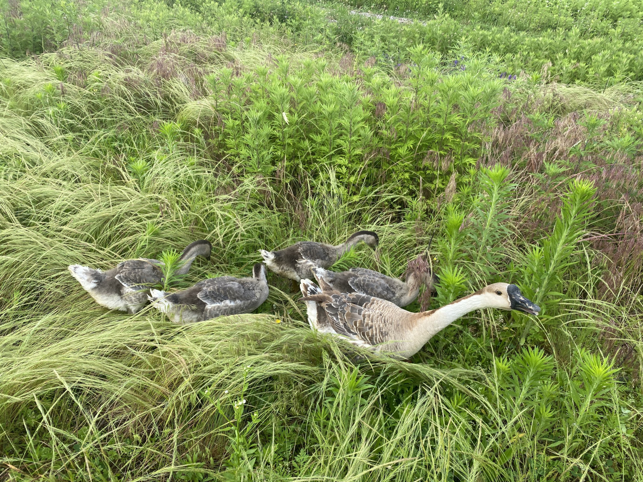 當他們被放出去,滿地找食時,鵝媽媽總會找到草比較嫩的地方,然後帶着這些小鵝過去。看着牠們悠哉悠哉地享受嫩草,就想起《詩篇》二十三篇2節「祂使我躺臥在青草地上,領我在可安歇的水邊。」大衛王在這《詩篇》說的「耶和華是我的牧者」,鵝媽媽真有那牧者的樣子。