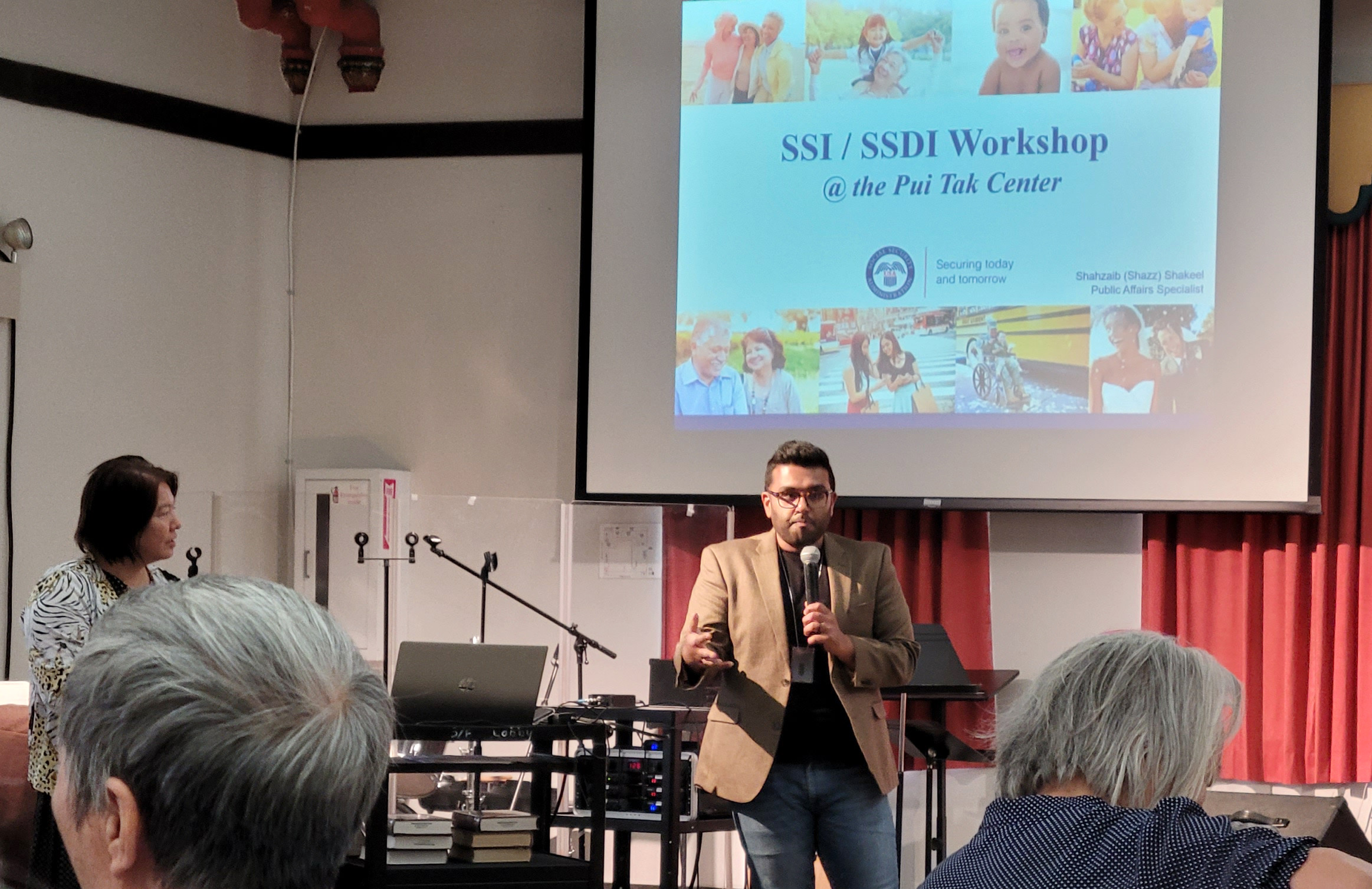 社會保障辦事處(SSA)於7月中在培德中心舉辦講座,為43名參加者提供實用資訊。辦事處專員Shahzaib(Shazz)Shakeel在講座後特別安排個別諮詢時間,解答參加者的疑難。當日共有5個歷時超過10年的個案獲得妥善處理與後續跟進,包括工作點數(Work credits)計算爭議,以及退休金少收問題的解決方案。