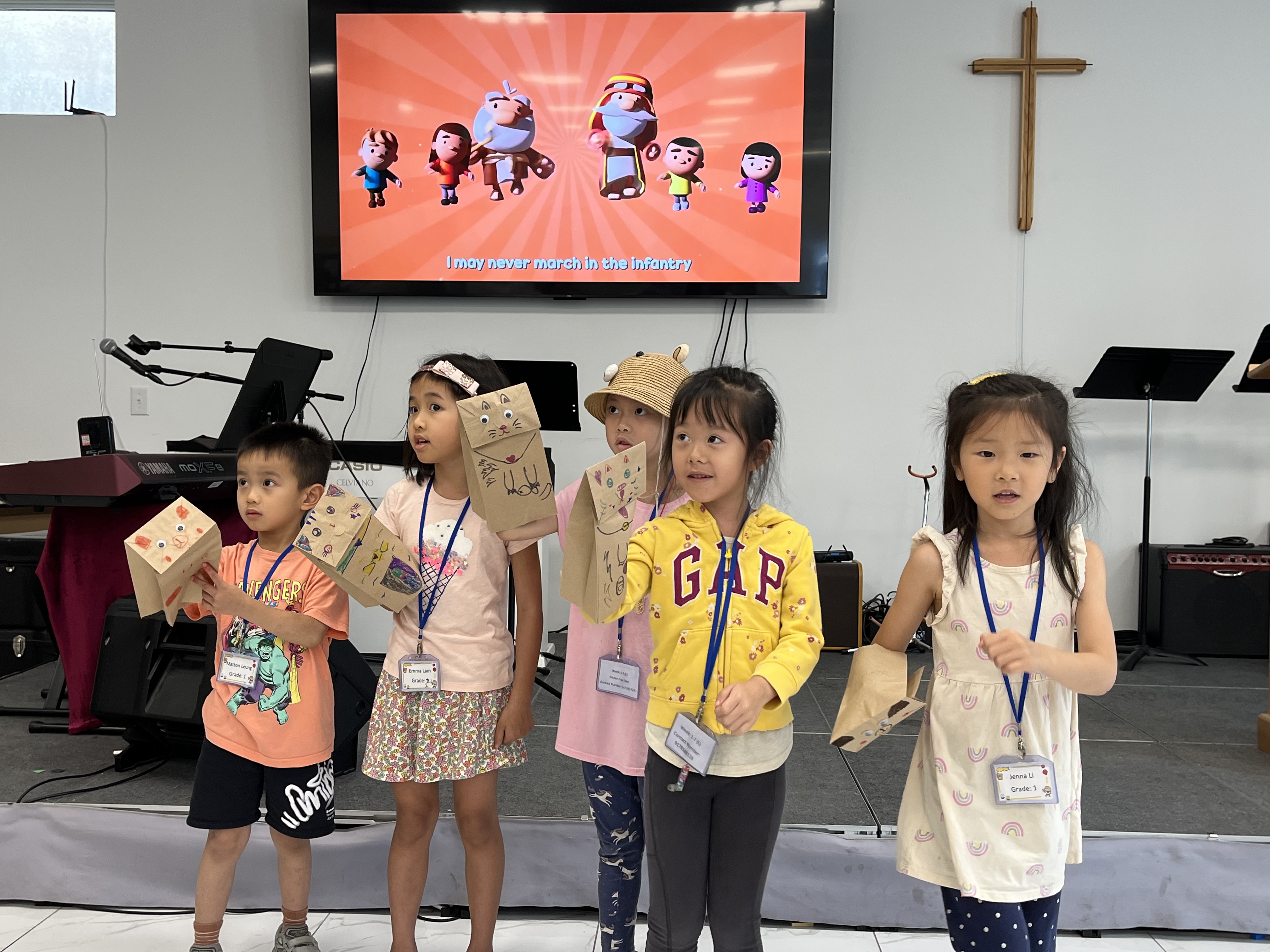 營會安排「音樂日」,孩子們用身體或凳子體驗節奏之美;「手偶聖經故事週」中,Tony老師指導製作襪子或紙袋手偶,學習講《聖經》故事。