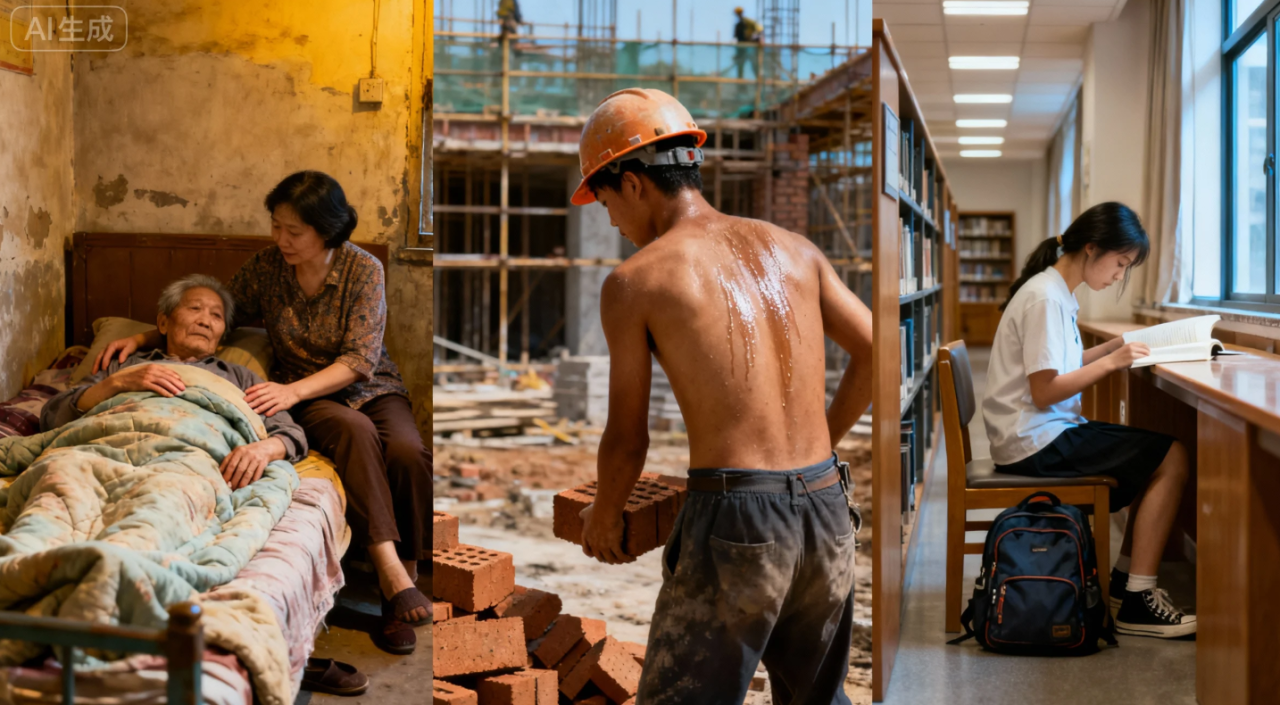她的祖母78歲,也患有老年病,平日在家照料祖父。彩怡偶爾回家時,也會幫忙照顧祖父。父母均為農民,無固定職業,也沒有穩定的經濟收入。姐姐仍在上學,哥哥尚未找到正式工作,偶爾外出打零工,掙來的錢只夠維持個人生活。母親身體狀況欠佳,自五月起開始頭痛,病情日漸加重,經醫生診斷為腔隙性腦梗死,已無法工作。家中所有經濟來源,全由父親一人承擔。