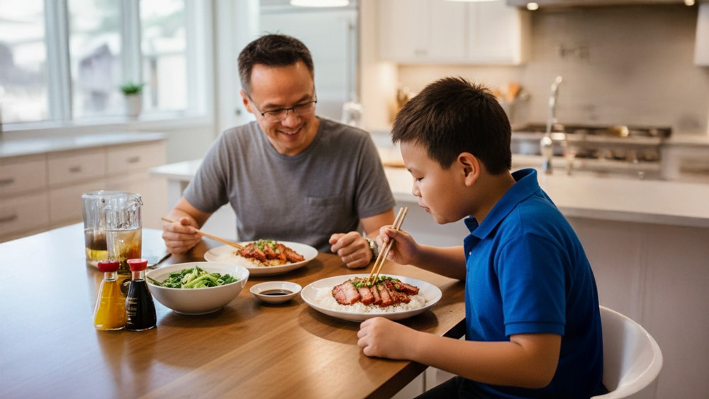 家裡由我負責膳食,比較清楚每個人喜歡的食物。其中大兒子Isaac就特別喜歡吃肥美的叉燒飯,我也投其所好,不時為他預備叉燒飯。