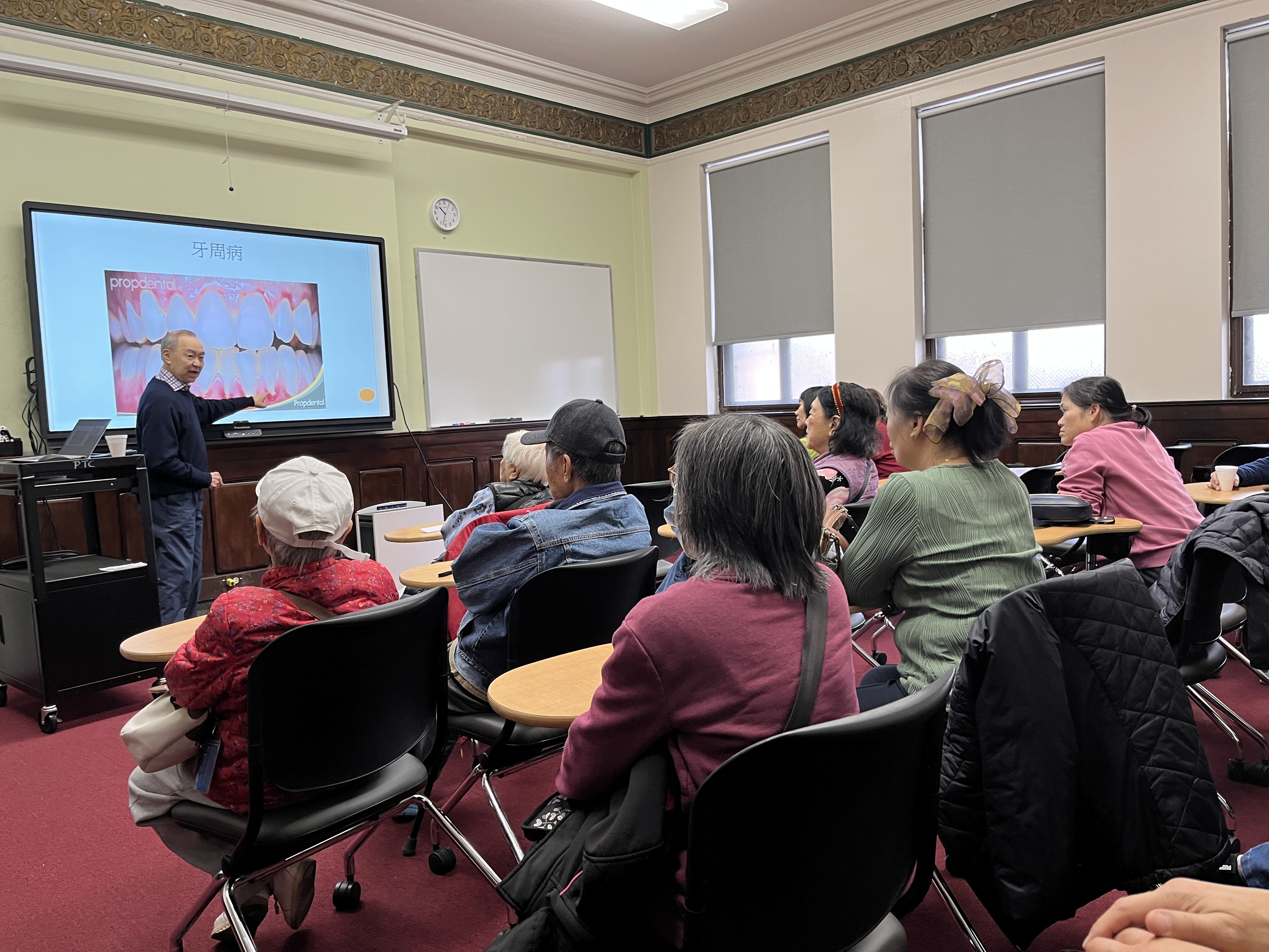 「一口好牙,一生健康」講座由牙醫黃思敏主講「一口好牙,一生健康」,強調口腔健康與全身健康息息相關。他指出牙周炎是口腔大敵,應對方法包括使用電動牙刷、牙線、牙縫刷、漱口水(雙氧水Hydrogen Peroxide 以1:1比例稀釋)及定期洗牙。他特別提醒長者放慢進食速度,避免刺激性食物,並妥善清潔牙托。此外,也應養成良好習慣,如飯後清潔牙齒、少糖、多喝水、定期檢查,並戒除吸煙、咬硬物、偏側咀嚼等不良習慣。