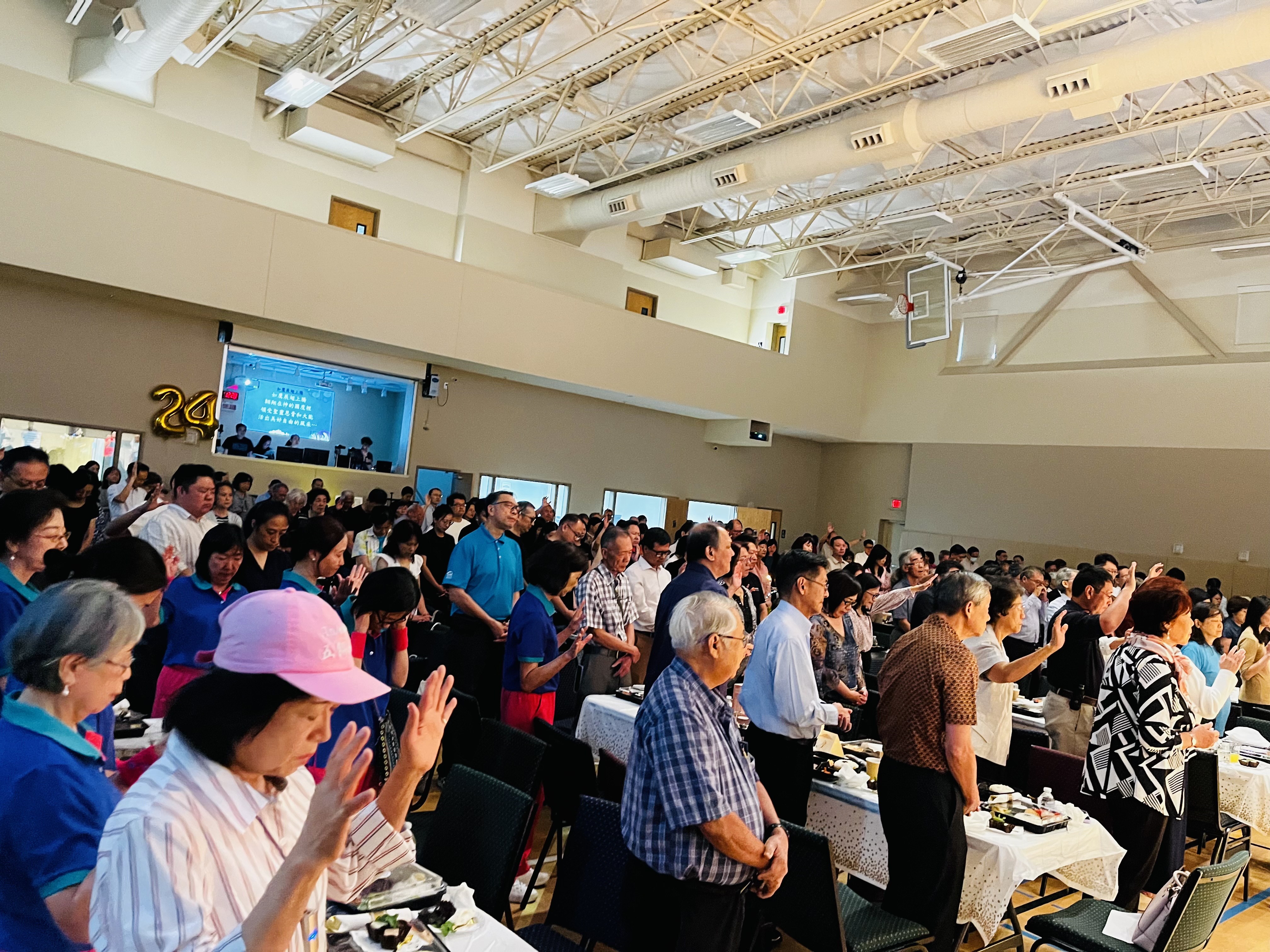 餐會敬拜餐會從2月就開始構思與策劃。一次次會議討論到無數次細節落實,每一步浸透着團隊的禱告、汗水與愛心。每位同工都懷着同一心志:讓這場感恩宴成為榮耀主名的聚會。餐桌花環是去年餐會使用後保留的,我們精心修整、再利用,希望以環保和感恩的心呈現最美的效果。重新設計的花環象徵着重生與延續,也提醒我們:上帝的恩典從未間斷;玻璃花瓶珍珠蠟燭擺件是巧思姊妹的貢獻。桌布、色調,到擺件位置,都經過多次嘗試與調整。餐會前一晚忙到十一點半。
