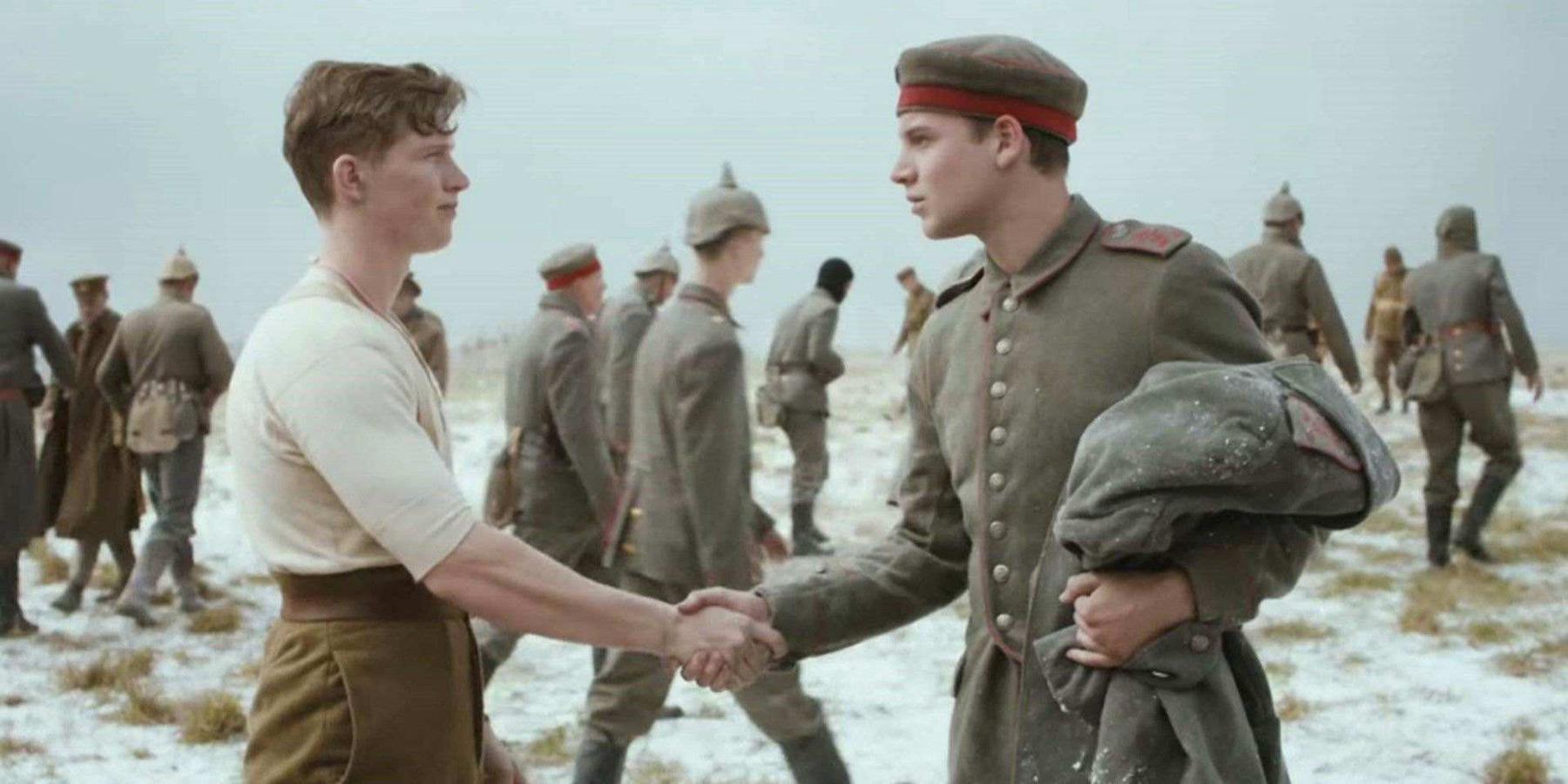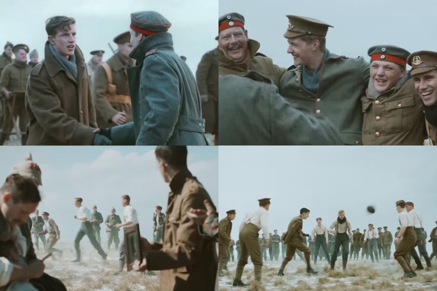 他們一起散步、聊天;德軍理髮師替英軍剪髮;英軍軍官展示未婚妻的照片;德國士兵分享對新婚的憧憬。就在那片本該充滿死亡的「無人地帶」,和平悄然降臨。