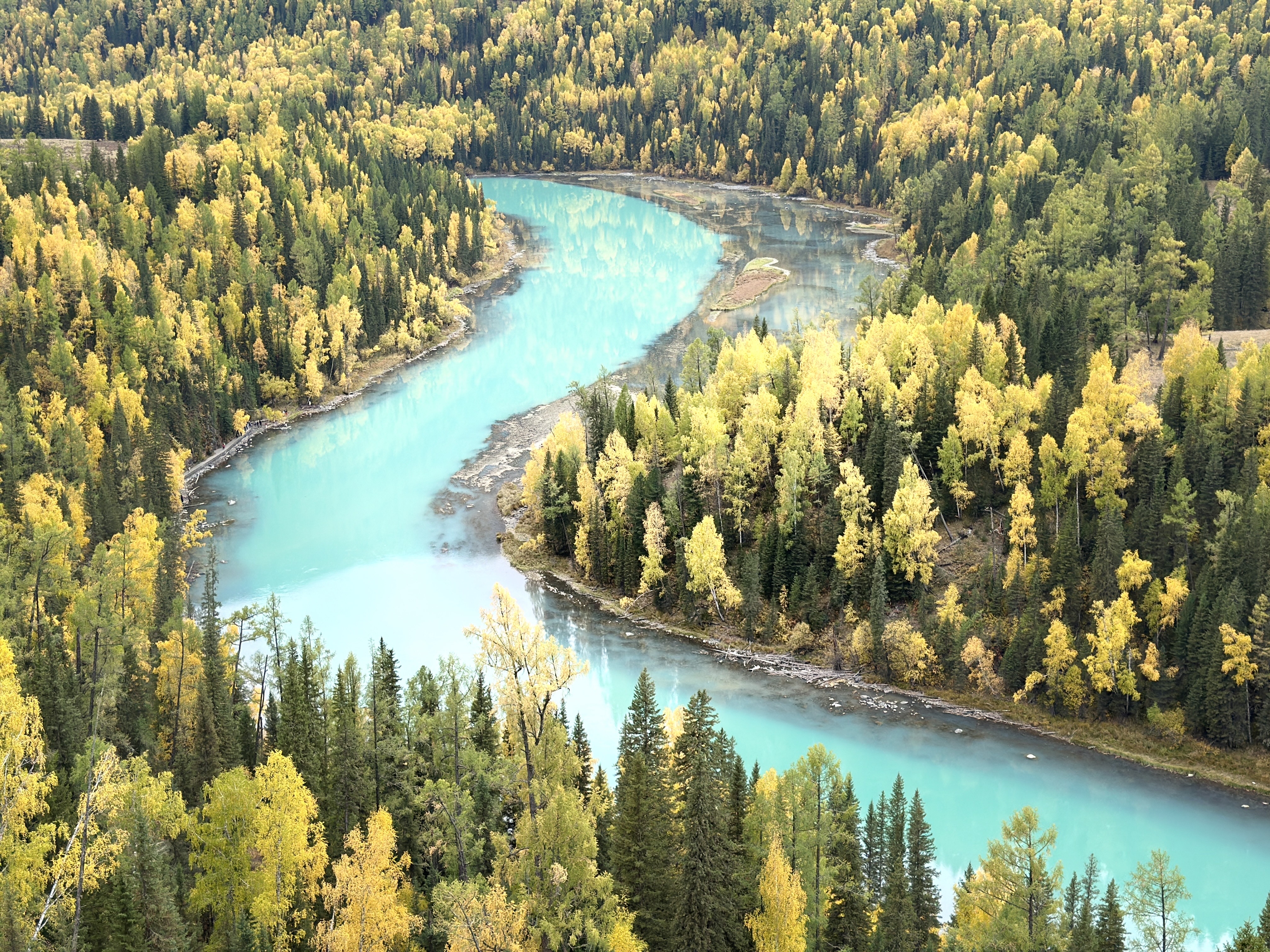 喀納斯湖湛藍如玉,白樺與雲杉交織成最美秋色,被譽為「中國最美的秋天」。