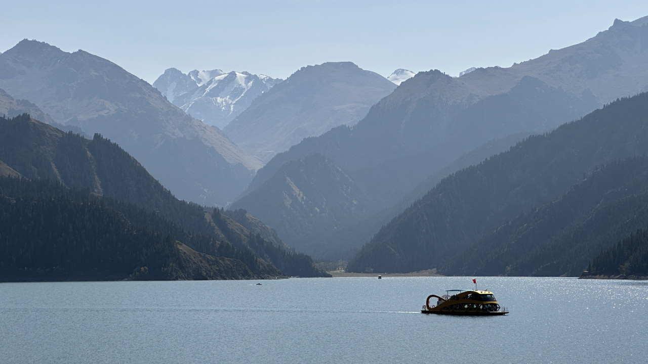 首日登天山天池,湖水清澈碧藍,雪峰環繞,如古人所稱「瑤池」。夜裡搭觀光列車北上,全團第一次坐火車遊新疆,興奮難掩!車上有卡拉OK、餐廳與按摩椅。