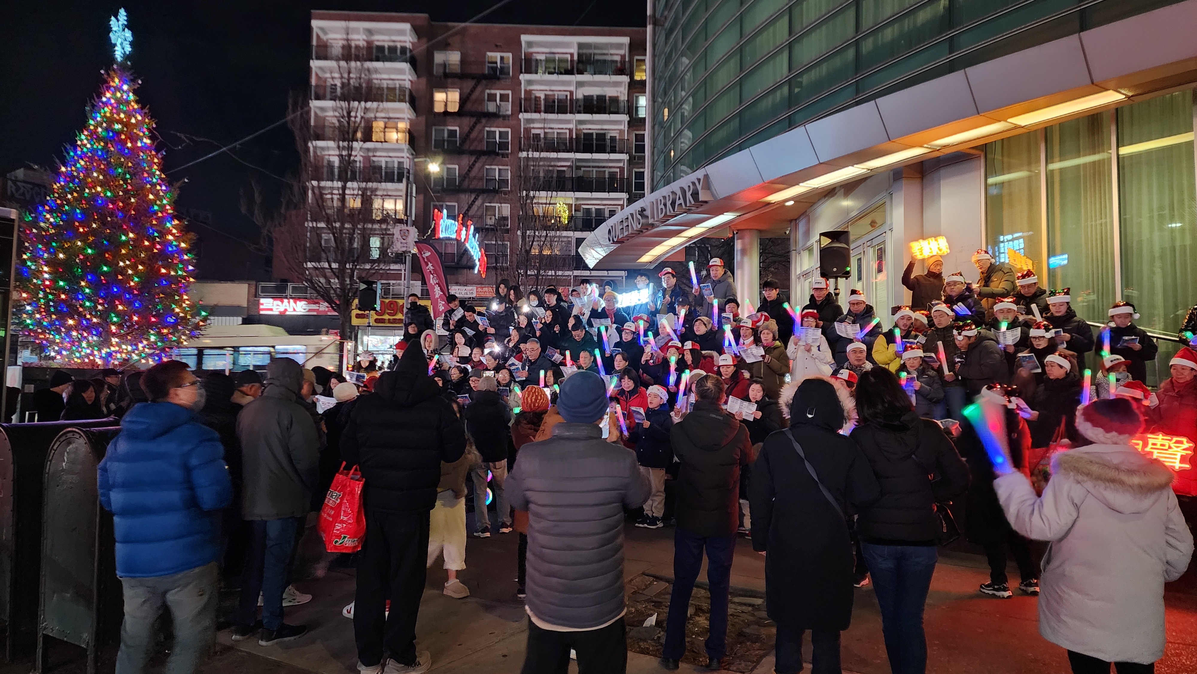 聖誕歌聲處處聞12月24日,平安夜「聖誕歌聲處處聞」,角聲連同紐約眾教會,再次將主愛化為溫暖的行動。晚上七點在福音聯合崇拜的聚會之後,齊聚在法拉盛圖書館門前,為市民與社區報佳音。在寒冬星空下基督教會同心合一,用嘹亮的《平安夜》歌聲,將屬天的和平與祝福傳遍街道,讓耶穌降生的光照亮這個黑夜,讓社區感受到愛與盼望。