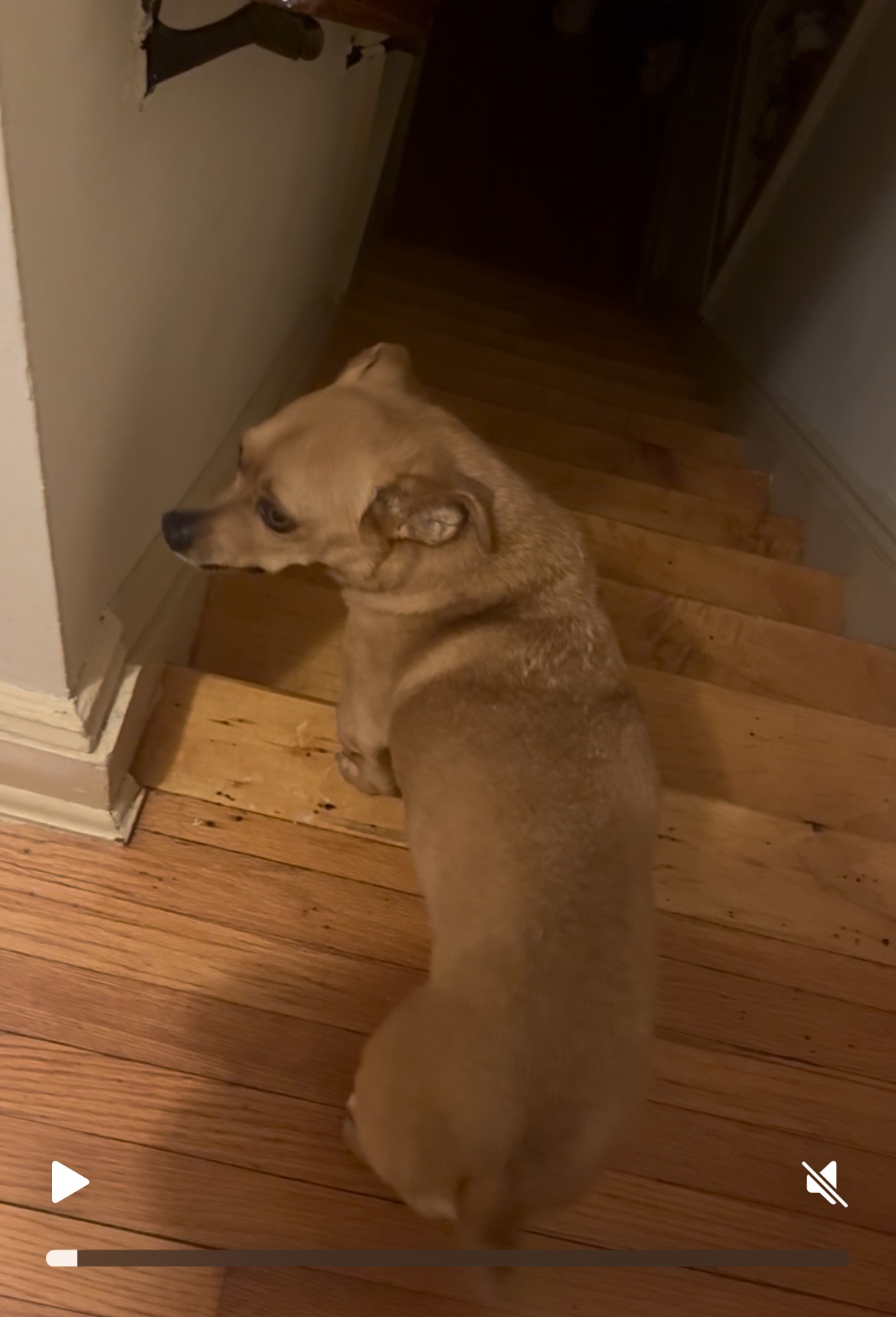 停下來等我有一天,我看見她半夜在我的床前轉悠,我想完了,她又要開始起夜了。那時候胸部還是很痛,但是還是忍痛起來。我想她肯定是憋不住了,我跟她走到樓梯口,她就站在那裡不動了,回頭看看我,彷彿在想什麼事情,猶豫了大約兩分鐘,她才決定開始下樓。但是走得非常慢,每走兩三步,就停下來,回頭看看我,彷彿是在告訴我:「慢一點。」就這樣一步三回頭地下了樓梯,然後她就快速地衝到院子裡去解決她的問題。
