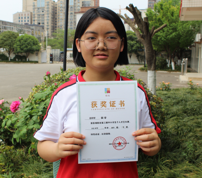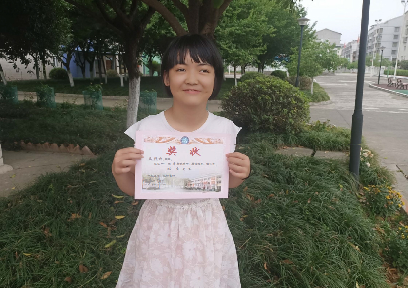 有時候學習上取得進步,被獎勵去買零食,她會細心慢慢挑選,慢條斯理,一言一行都透著沉穩與細緻。她的興趣、特長很廣泛,尤其是寫得一手好字;常見她在課餘時間自己練字,學校老師見她的字寫得好,便建議她參加書法比賽。結果還真的令人驚喜!盡管她沒有專業書法老師指導,還是獲得市級書法比賽二等獎。