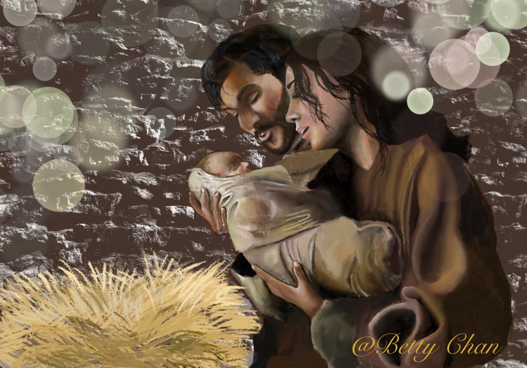約瑟從加利利的拿撒勒城上猶太去,到了大衛的城,名叫伯利恆,因他本是大衛一族一家的人,要和他所聘之妻馬利亞一同報名上冊。那時馬利亞的身孕已經重了。他們在那裡的時候,馬利亞的產期到了,就生了頭胎的兒子,用布包起來,放在馬槽裡,因為客店裡沒有地方。在伯利恆之野地裡有牧羊的人,夜間按著更次看守羊群。有主的使者站在他們旁邊,主的榮光四面照著他們;牧羊的人就甚懼怕。那天使對他們說:「不要懼怕!我報給你們大喜的信息,是關乎萬民的;因今天在大衛的城裡,為你們生了救主,就是主基督。你們要看見一個嬰孩,包著布,臥在馬槽裡,那就是記號了。」忽然,有一大隊天兵同那天使讚美神說:「在至高之處榮耀歸與神!在地上平安歸與祂所喜悅的人!」眾天使離開他們,升天去了。牧羊的人彼此說:我們往伯利恆去,看看所成的事,就是主所指示我們的。他們急忙去了,就尋見馬利亞和約瑟,又有那嬰孩臥在馬槽裡;既然看見,就把天使論這孩子的話傳開了。凡聽見的,就詫異牧羊之人對他們所說的話。馬利亞卻把這一切的事存在心裡,反覆思想。牧羊的人回去了,因所聽見所看見的一切事,正如天使向他們所說的,就歸榮耀與神,讚美祂。(二章4-20節)