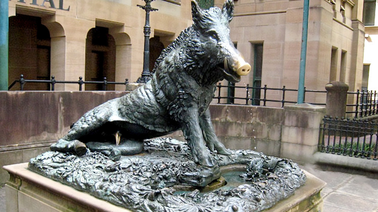 後找尋有關資料,得知原塑像名il Porcellino (The Little Pig),是意大利雕塑家皮特羅‧塔卡(Pietro Tacca, 1577-1640)的作品,現藏於意大利佛羅倫斯(Florence)的博物館。這座仿雕塑像是在1968年,由Marchesa Fiaschi Torrigiani捐贈與醫院,以紀念她的父親Thomas Fiaschi及兄長Piero,他們均是悉尼醫院的外科醫生。這也是為醫院籌款的一個方法,亦表明澳洲與意大利兩國的友誼。