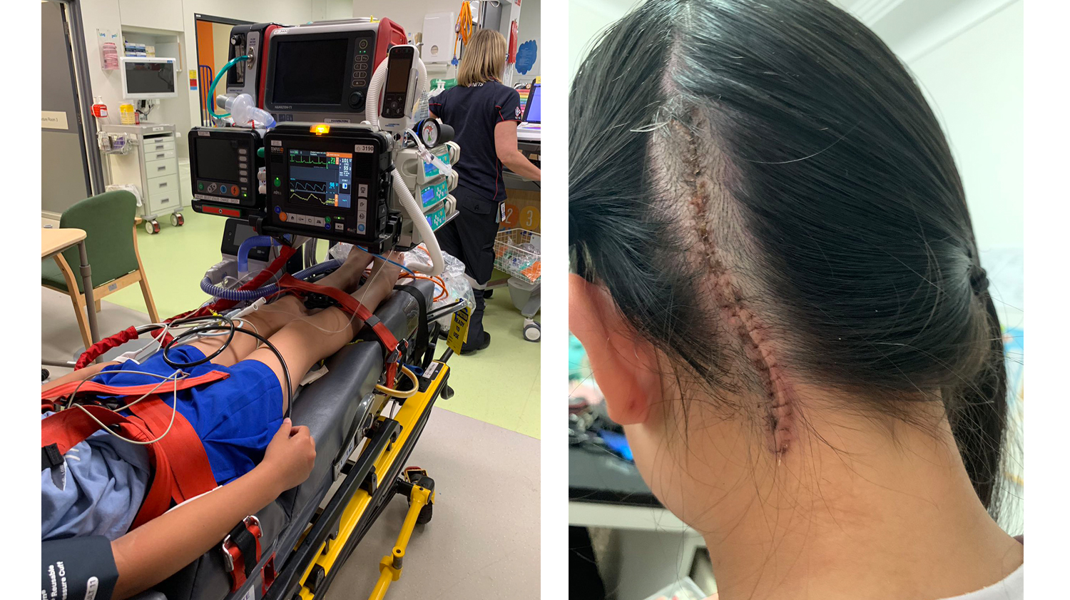 第二天清晨,孩子繼續喊疼,我依照護士的建議給她吃了止痛片,看她還是很痛苦,我想到給教會的一個姊妹打電話,請她幫我問一下這種情況下應該去家庭醫生還是急診。雖然我知道神一直用祂大能的手看顧着我們,但這個電話讓我特別感受到神對女兒的看顧。我們得了建議,送孩子到附近的醫院看急診,並要求做CT,卻被拒絕。一個小時之後經過我們迫切的請求,醫院終於同意了。CT的結果是頭骨三段骨折,蛛網膜下腔出血。孩子被救護車緊急送到兒童醫院的急診室。