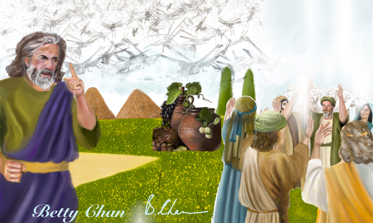 「土地啊,不要懼怕,要歡喜快樂,因為耶和華行了大事。田野的走獸啊,不要懼怕,因為曠野的草已生長,樹木結果,無花果樹、葡萄樹也都效力。錫安的民哪,你們要歡喜,要因耶和華──你們的神快樂;因他賞賜你們合宜的秋雨,為你們降下甘霖,秋雨和春雨,和先前一樣。禾場充滿五穀,池中漫溢新酒和新的油。我差遣到你們中間的大軍隊,就是蝗蟲、蝻子、螞蚱、剪蟲,那些年間所吃的,我要補還給你們。你們必吃得飽足,讚美耶和華──你們神的名,祂為你們行了奇妙的事。我的百姓不致羞愧,直到永遠。你們必知道我是在以色列中,又知道我是耶和華──你們的神,沒有別的。我的百姓不致羞愧,直到永遠。