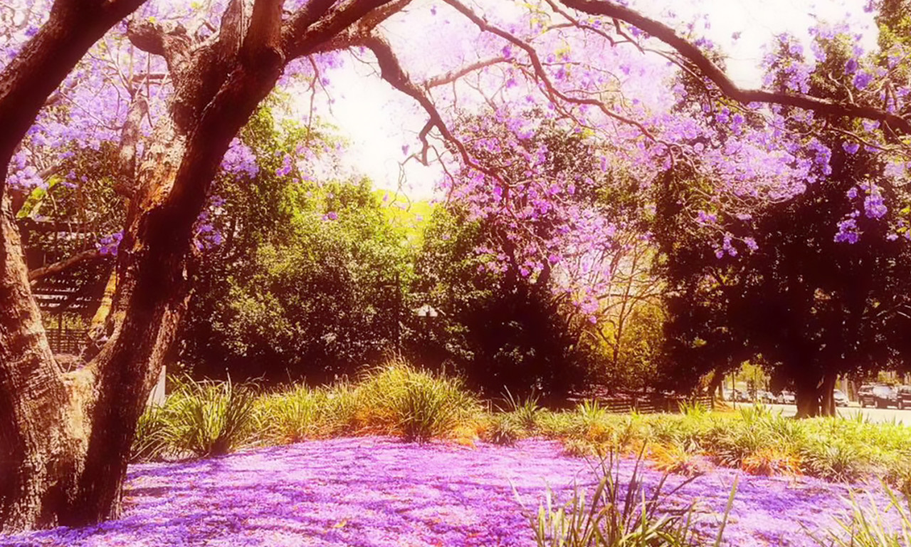 許多嚮往浪漫紫霧驚喜的人們都會在休閒時抽空去大街小巷尋找藍花楹蹤影;攝影師們更是背上長槍短炮,去藍花楹小鎮或新農場公園或昆士蘭大學等享有盛名之處,瞄準令人動心的夢幻華容按動快門;詩人們呢,或許正在妙筆生花,靜靜地寫下像風吹過九萬里般深遠的詩篇。