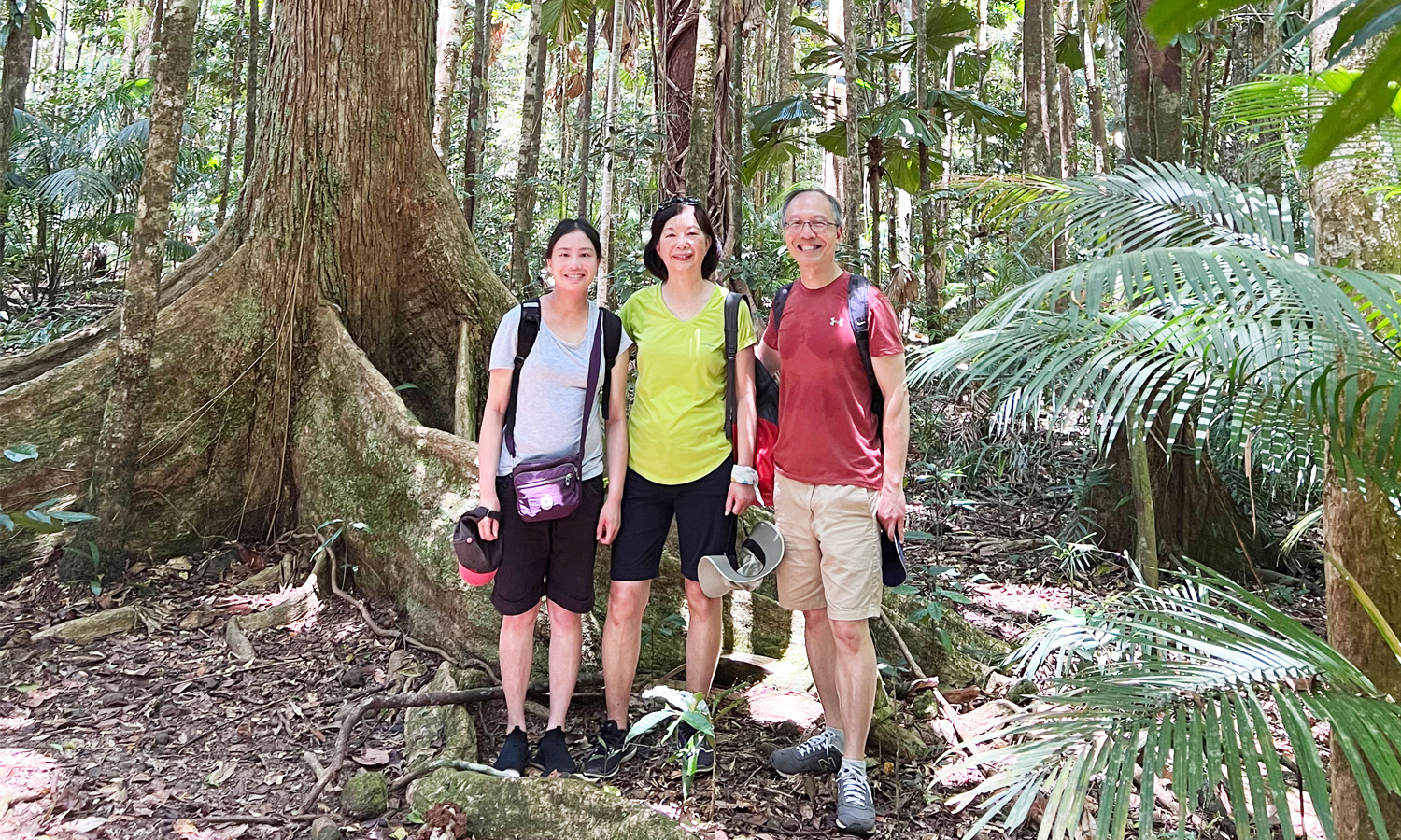 星期天在Daintree Rainforest,我們參加了Cooper Creek生態學家Neil Hewett帶領的一次四小時的遠足,途經叢密的熱帶森林。在棕櫚樹樹冠的樹蔭下,我們看到高聳的老樹,粗壯的藤蔓。我們要跨越一些河流,藉着繩索爬下一些山坡,遠遠望見一些原住民視為神聖的湖泊。Neil帶我們看到一些有毒的植物和菓實(例如Cassowary Plum),在樹幹上有保護色的獵人蜘蛛,我們還在樹叢中遇上一條小蛇。Neil又指出一些鶴鴕(Cassowary)和野豬的痕跡。原來鶴鴕在雨林的生態和繁殖中扮演着很重要的角色。在四小時的行程中,我從Neil學了很多。我還購買了他的著作《A Stray Liana》,他還為我們親筆簽名。這本書記錄了他30多年的跨越之旅,穿越澳大利亞一些最偏遠和傳統的土著家園,進入世界上最古老的熱帶雨林的中心地帶。