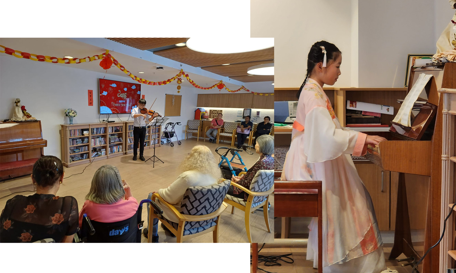 1月24日,角聲再次探訪去年聖誕節曾到訪的西人養老院,蒙神恩典,與院內的西人長者及少數華人長者共慶農曆新春。此次活動特別邀請了幾位才華洋溢的青少年擔任表演嘉賓,他們分別以小提琴、鋼琴及揚琴演奏多首動人樂曲。中西樂韻交織,和諧共鳴,贏得在場長者們的熱烈掌聲與讚賞。