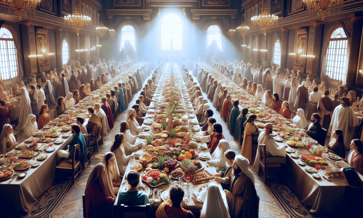 希律安提帕斯的婚外情是第一場筵席的背景(參《馬太福音》十四章1-12節)。希律當時過生日,宴請賓客。《馬可福音》說他請了「大臣和千夫長,並加利利做首領的」(六章21節下),想必是盛大、奢華、豔麗,但這場宴席同時也充滿了淫穢放縱、血腥殘忍、明爭暗鬥、勾心鬥角。六節說「希羅底的女兒在眾人面前跳舞」。這個舞絕不是芭蕾舞或者是交際舞,而是猥褻情色、譁眾取寵的舞。這正好合希律的胃口,讓他看了之後大悅,就「起誓應許隨她所求的給她」。女兒被母親所使,要求希律「把施洗約翰的頭放在盤子裡給我」。於是施洗約翰這名偉大先知,就在這個筵席上面不明不白地被斬首。