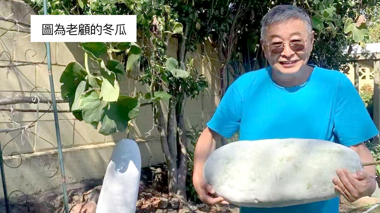 尤其是冬瓜,長勢喜人。老顧每天澆水施肥,勤勞耕耘,植物似乎也懂得回報他的用心。當花朵綻放、果實成熟時,那份喜悅難以言表。今年的冬瓜特別茁壯,種在茶樹下,冬瓜葉與茶花交相輝映,景色宜人,結岀了八個大冬瓜,最大的竟重達24斤!