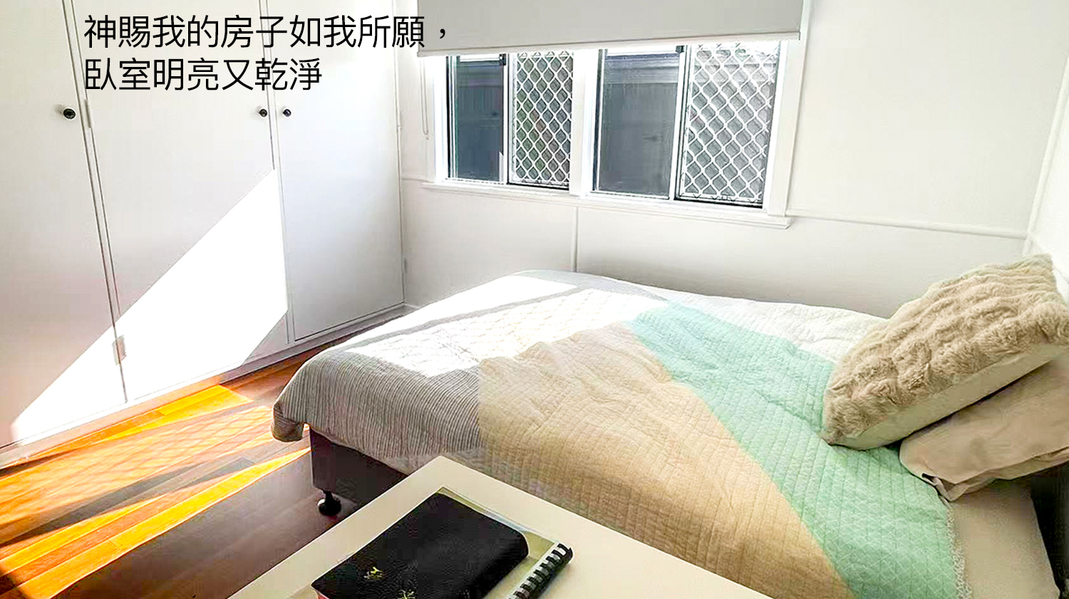 拿到鑰匙,再走進屋子,我才開始仔細端詳屋內的每一個角落。越看我越是驚嘆:「天父啊,你怎能想得這樣周到,連我深藏內心的願望,你都一一幫我實現了?!」