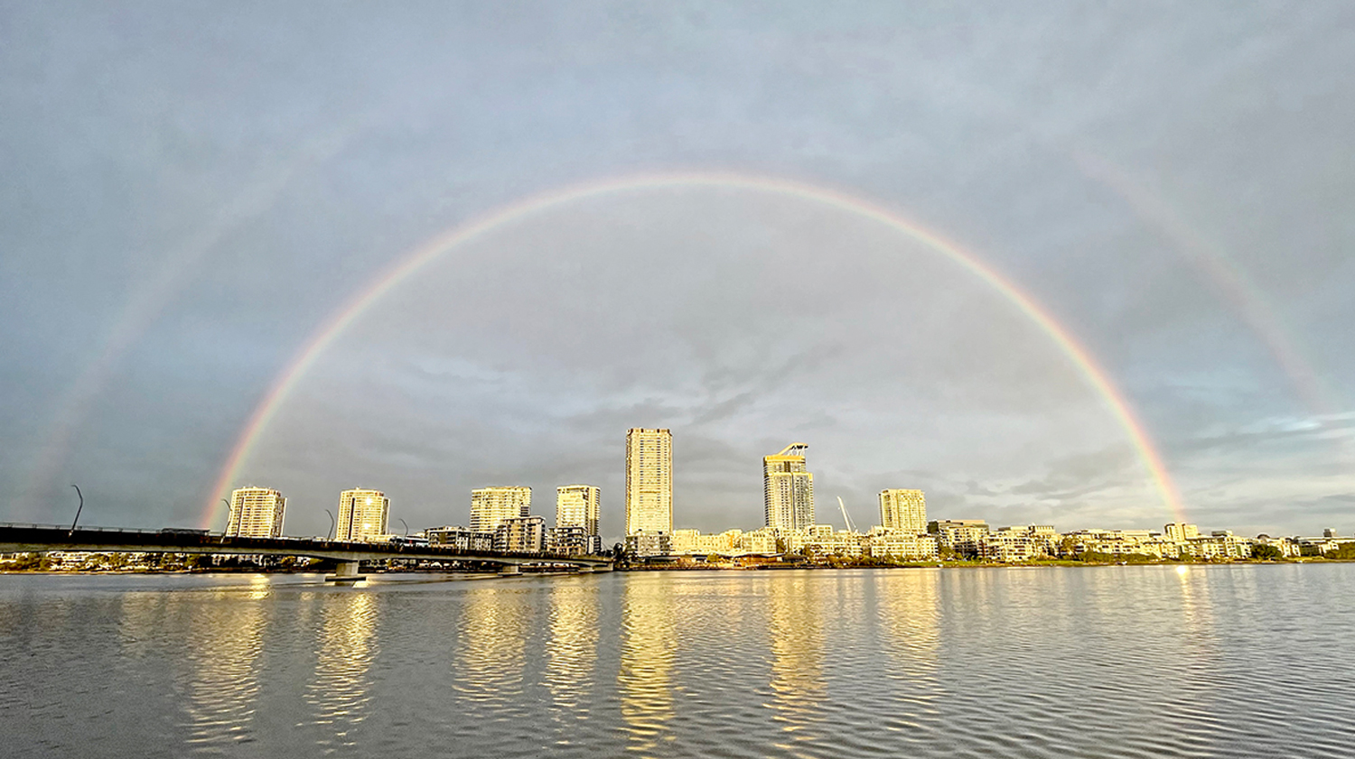 幾天前的黃昏,妻子和我一起,到河濱散步。剛下到水邊,看見隔岸彩虹初現,我們不約而同地驚呼:「有彩虹。」轉瞬之間,眼前的彩虹越發清晰、完整、明亮。我們都知道,這是上帝與我們立約的記號。祂的慈愛永遠長存!祂的恩典無處不在!祂要賜福給我們,由父及子,直到千代!