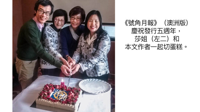 在上一期(2025年9月)的《號角月報》裡,刊登了沙姐的最後一篇採訪文章──《相信耶穌才是終極的出路》。當時她將稿件電郵給我,請我打印後交給文章主角鄺伯的太太校對。那天我們還相約共進一頓豐富午餐,沒想到竟是最後一次同桌相聚。