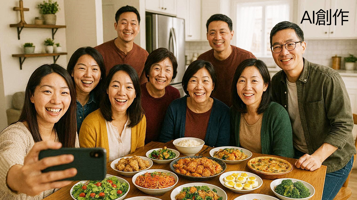屋子裡熱鬧極了,有孩子們玩遊戲的笑聲,大人們嘰嘰喳喳地聊天、寒暄、誇讚彼此的廚藝。空氣中瀰漫着飯菜的香味,那種溫馨、熟悉的氛圍,讓人感受到「家」的味道。