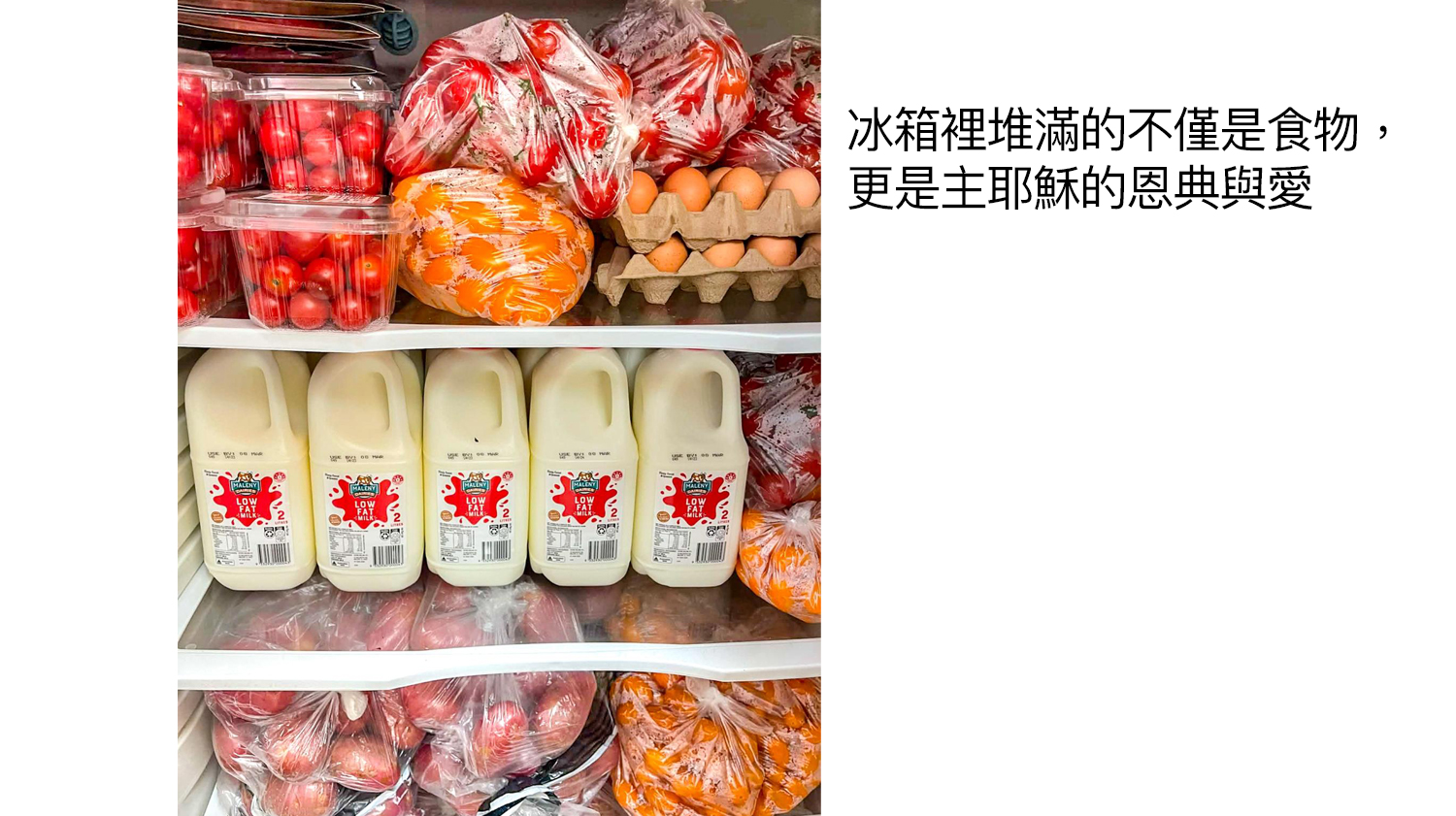 冷靜下來後,我開始為冰箱的事禱告,尋求神的旨意。很快,一個意念就浮現在我腦海中:為什麼不叫上教會和住在附近的弟兄姊妹來協助呢?把食物分散出去,讓每個人領走一部分食物,存放在各自的冰箱裡,等恢復供電後再拿回來,這不就解決了嗎?