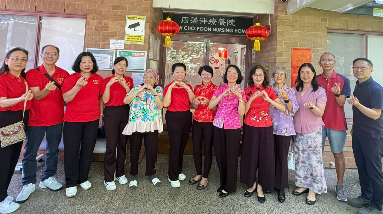 澳洲角聲佈道團「愛鄰舍」、西雪梨福音粵曲小組,以及基督教百思道華人公理會讚美操小組,共12人的春節佳音團隊,於2月4日分別探訪雪梨Earlwood區的周藻泮療養院,以及Campsie區的Canterbury Place Care Community,向華裔院友送上新春祝福與基督的愛。