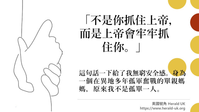 「然而,信主後心中仍有不捨,於是向神禱告:「神啊,若你允許我繼續追尋音樂夢,求你帶領,我願意靠着你勇敢去闖一闖。」後來真的似有感動,好像神應允了我,於是毅然辭去不錯的工作,並向父母表明要追求音樂夢。他們見我心意已決,便未加阻攔;而我也給自己立下四年期限——若屆時仍未闖出名堂,就回頭安分打工。
