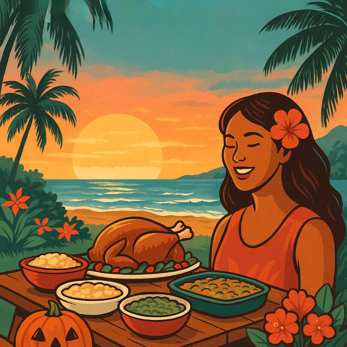 許多夏威夷家庭,仍選擇在室內享用傳統感恩節大餐;但也有不少人,會利用夏威夷宜人的天氣,舉辦戶外野餐或海邊午餐,別具風味!無論場地如何,節日的核心都是——共度時光、共享美食。傳統菜餚包括:烤火雞、餡料(Stuffing)、馬鈴薯泥、四季豆砂鍋、蔓越莓醬等,琳瑯滿目。