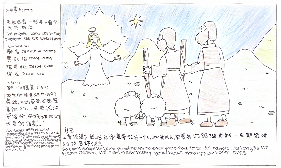 圖2——牧羊人在夜間看見天使與榮光,這是上帝向人宣告的喜訊:不要懼怕,救恩已然臨到。這好消息不屬於少數人,乃是為萬民而來。