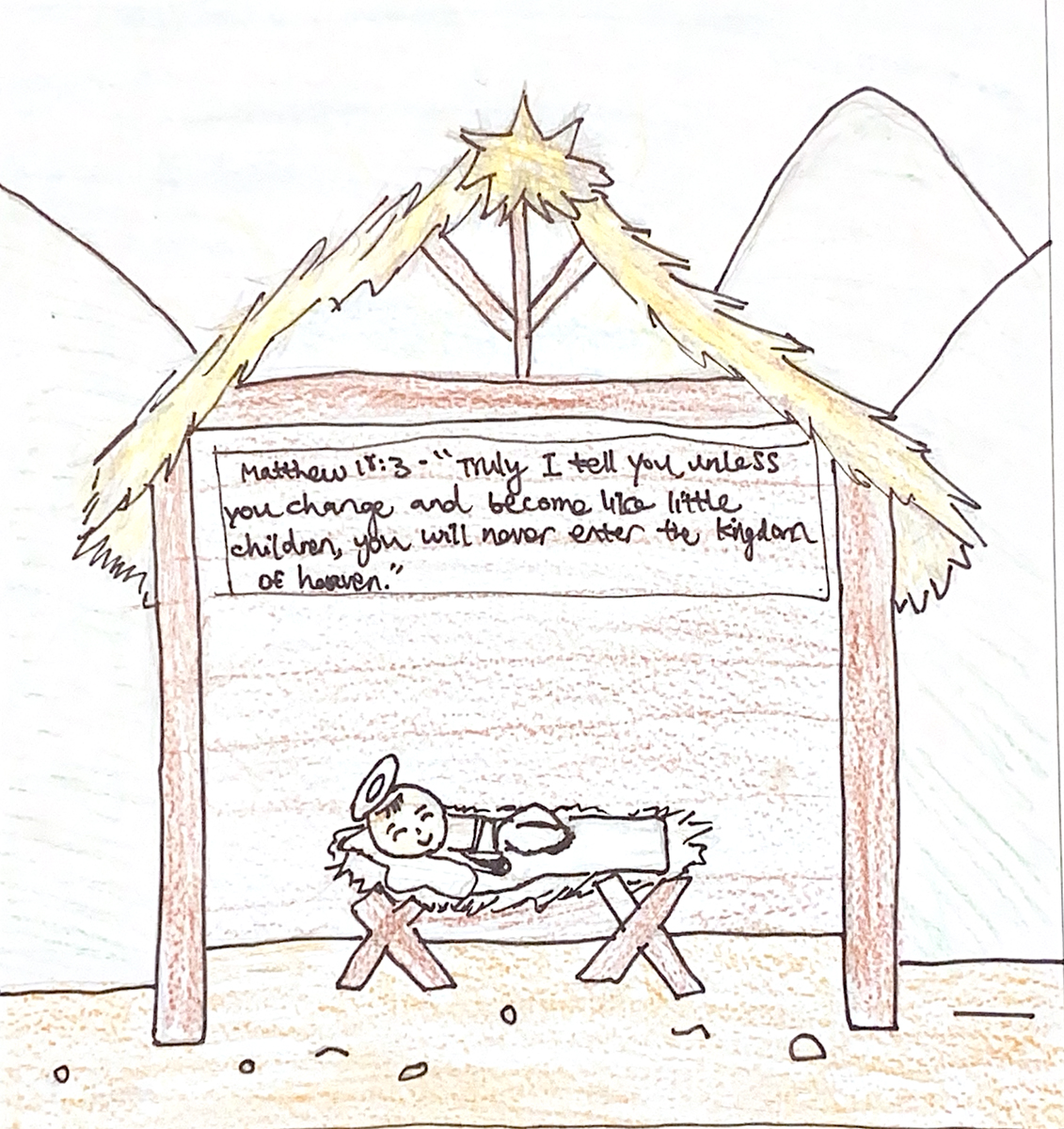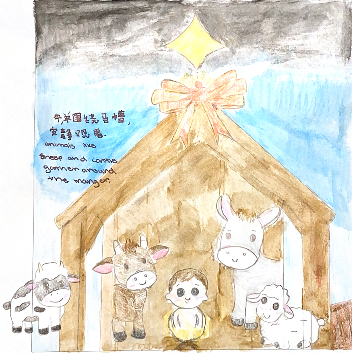 李唯恩 Gracelynn Lee 《馬槽前的小動物們》 上帝將祂的愛子賜給人類,帶來和平,世間萬物都感受到了這份愛與寧靜。