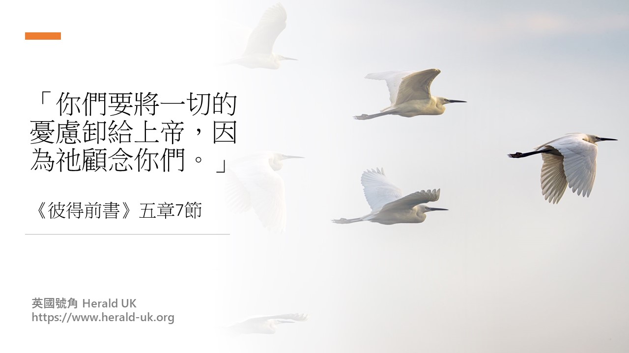 「你們要將一切的憂慮卸給上帝,因為祂顧念你們。」(《彼得前書》五章7節)