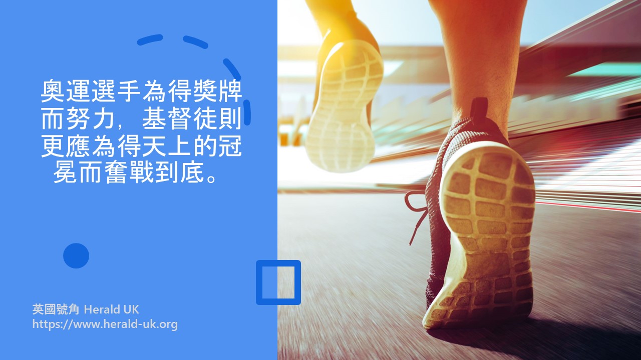 奧運選手為得獎牌而努力,基督徒則更應為得天上的冠冕而奮戰到底。