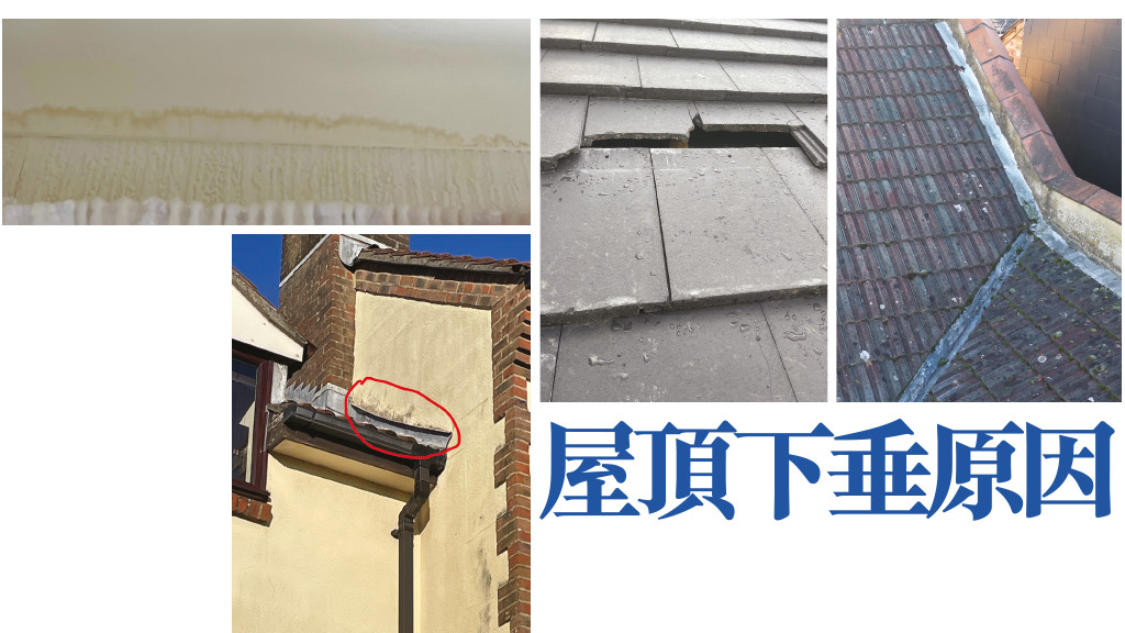 2. 天氣因素:英國的氣候多變,經常降雨和潮濕的環境,會加速屋頂材料的磨損和退化。此外,嚴重的風暴和雪霜負荷也可能對屋頂結構造成壓力,進一步導致瓦片下垂。