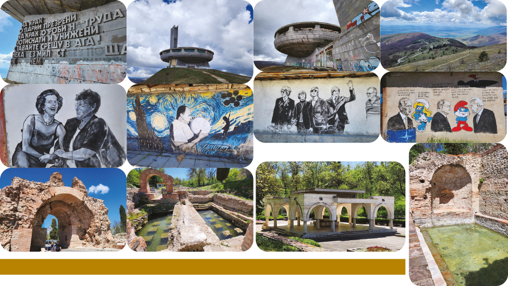 在街頭藝術村往帝王谷方向開車約一小時,便到達一列山峰。最高的一峰有一座看似飛碟的物體,遙距觀之還以為是外星人侵襲地球的總部。原來這是一座保加利亞共產時期的高幹會議中心,有點像中國的北戴河。會議中心在保加利亞步向民主後已荒廢,前幾年還容許遊客進內參觀,但現因失收嚴重而封閉。除了觀看共產時代的遺跡外,場外能看到的風光也十分怡人,圍繞山峰的行山徑更是登高者的寵兒。