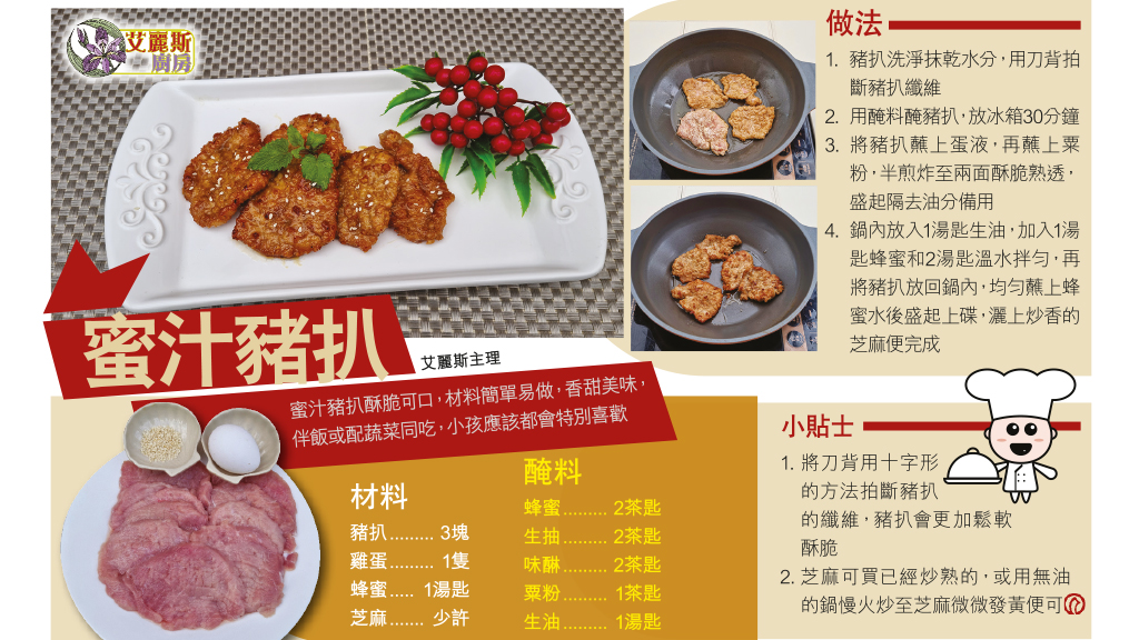 蜜汁豬扒酥脆可口,材料簡單易做,香甜美味,伴飯或配蔬菜同吃,小孩應該都會特別喜歡