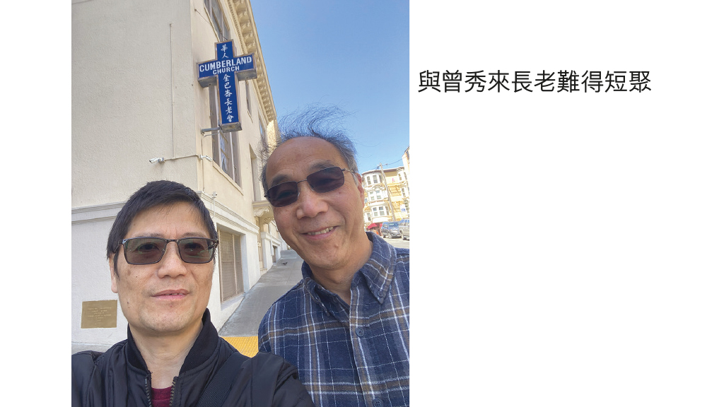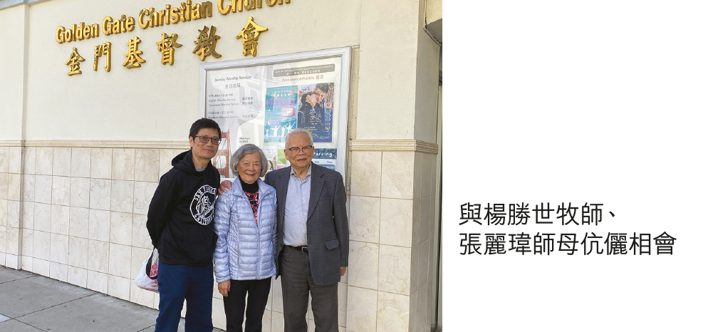 筆者在會議結束後在洛杉磯多留數天,並且有機會北上三藩市,分別探訪角聲北加州分會前主任曾秀來長老,以及楊勝世牧師、張麗瑋師母伉儷。彼此祝福、互相砥礪!