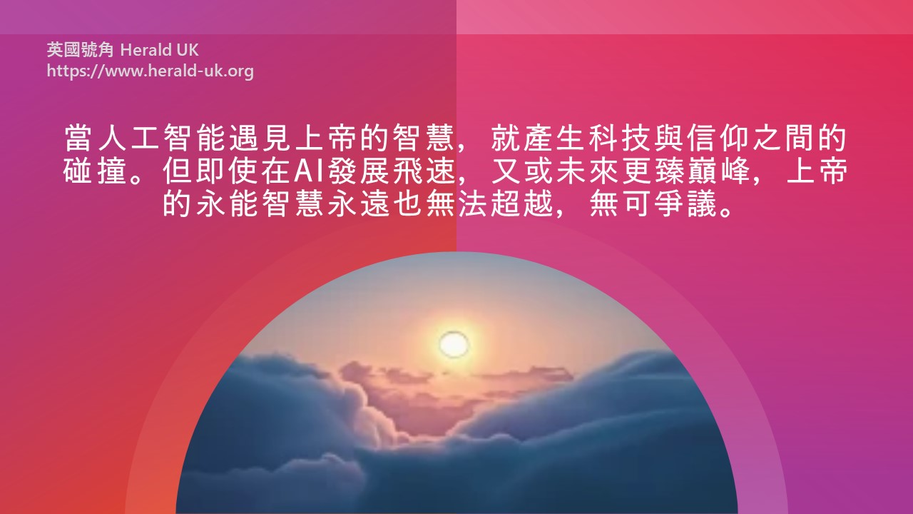 顯然,當人工智能遇見上帝的智慧,就產生科技與信仰之間的碰撞。但即使在AI發展飛速,又或未來更臻巔峰,上帝的永能智慧永遠也無法超越,無可爭議。