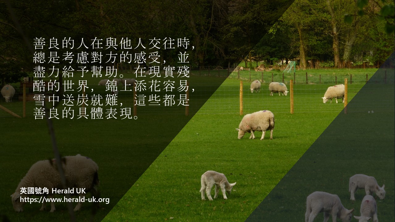 因為內心的良善,才讓之成為成就良好教養的內在驅動力,使得人們在與他人交往時能夠做到真誠與體貼,才能夠讓人與人之間和諧相處。