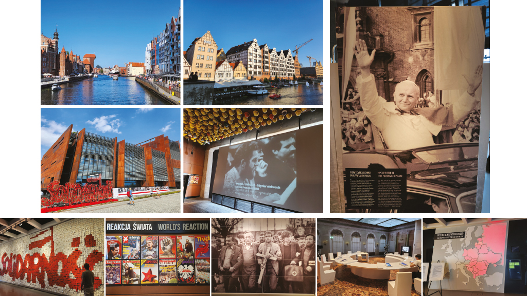 波蘭的團結工會運動(Solidarność)是20世紀末最重要的社會運動。這座特別以鐵鏽外牆為主調的歐洲團結工會中心建於運動的發詳地列寧造船廠並忠實地呈現這場波瀾壯闊的運動的來龍去脈。甫進場是船廠工人上班打卡的房間,輕輕地提及東歐不同鐵幕國家的鎮壓事件,包括布拉格之春及柏林圍牆外對逃脫者的射殺。之後便提及1976年波蘭政府對人民因物價飛漲展開的抗議活動所進行的殘酷鎮壓。