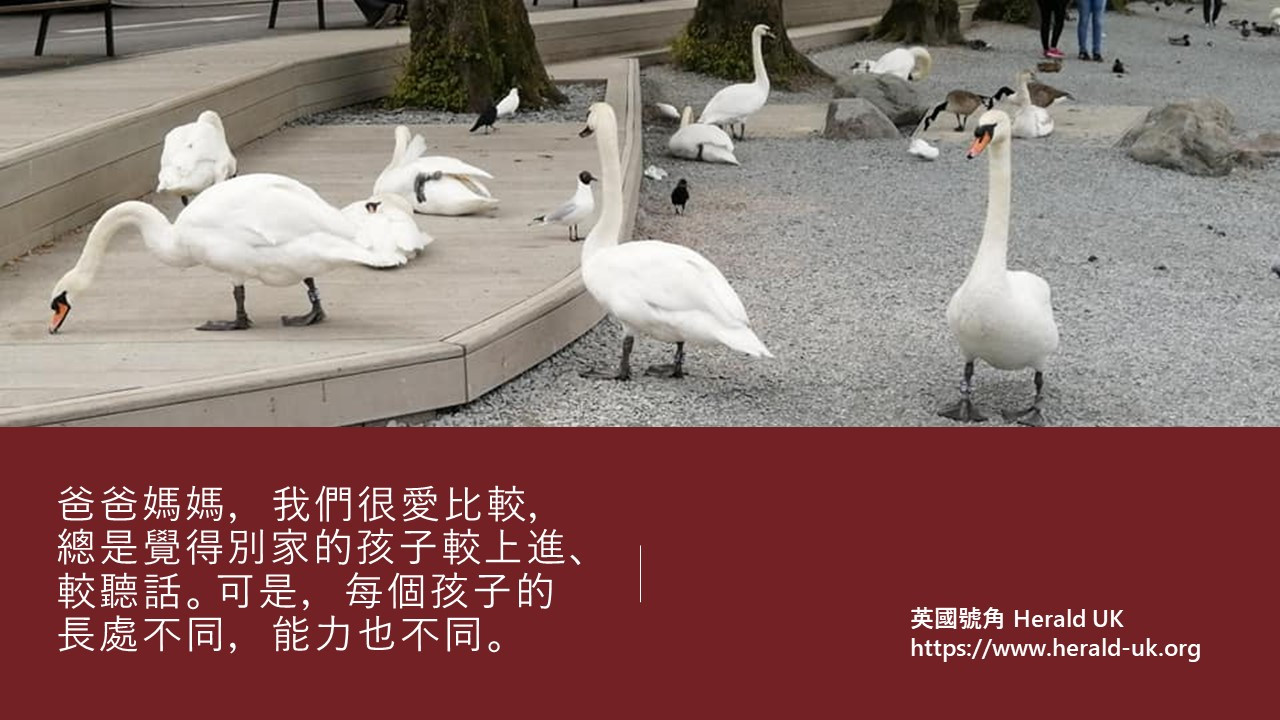 爸爸媽媽,我們很愛比較,總是覺得別家的孩子較上進、較聽話。可是,每個孩子的長處不同,能力也不同。多稱讚、互相尊重、適時放手,相信你的孩子和其他孩子一樣也可在英國開創自己的新天地。