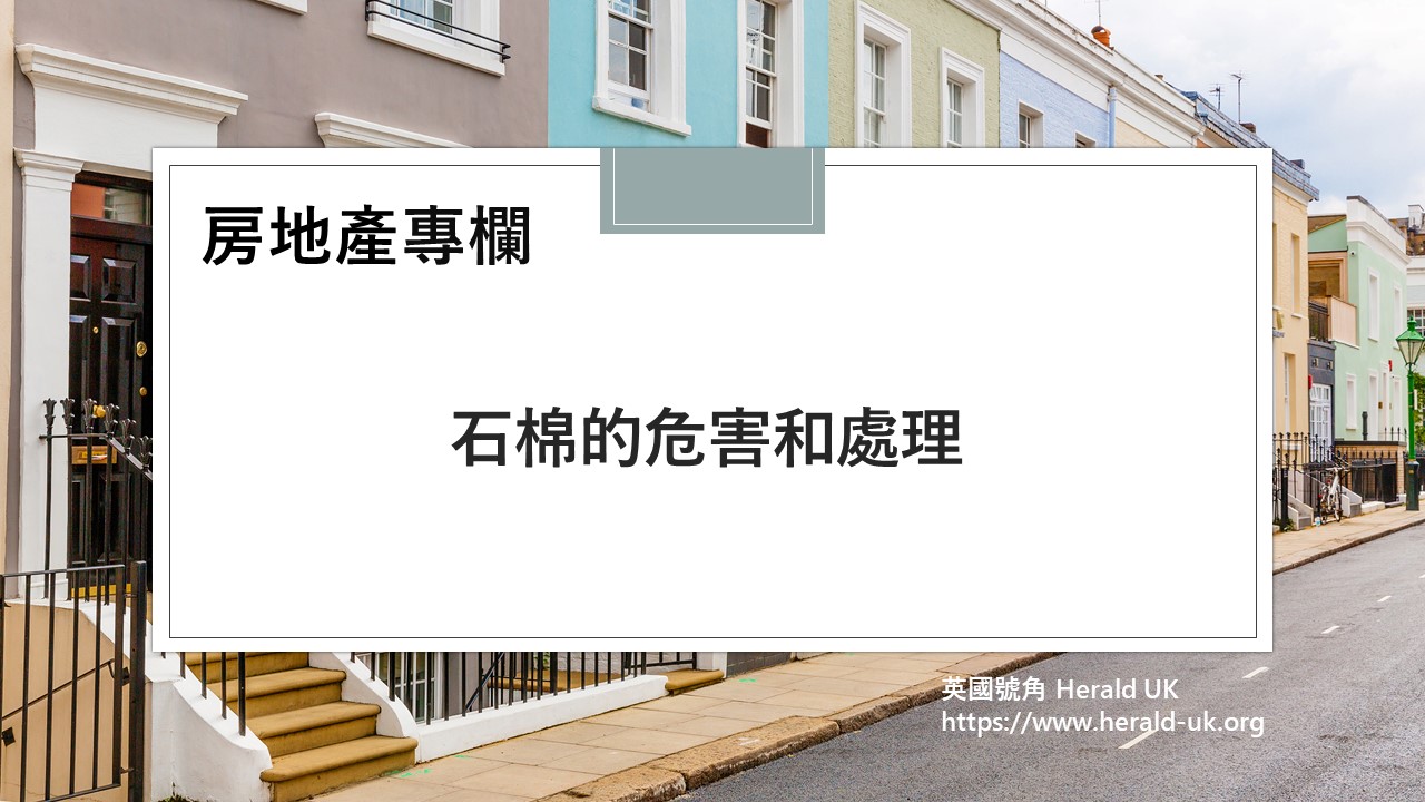 石棉(Asbesto)是一種天然礦物。它曾被用於許多建築材料中,包括隔熱材料、水泥和防火板。石棉還被用於家用產品,例如烤箱手套和熨斗板。在1900年代初期,人們開始了解到石棉的危害,但直到1999年,所有種類的石棉才在英國被全面禁止。進口和使用白石棉(溫石棉)被禁止,英國自此不再在建築物中使用石棉。儘管在英國已經禁止使用石棉,但在全球範圍內,石棉仍被使用,且在大多數國家仍是合法的。