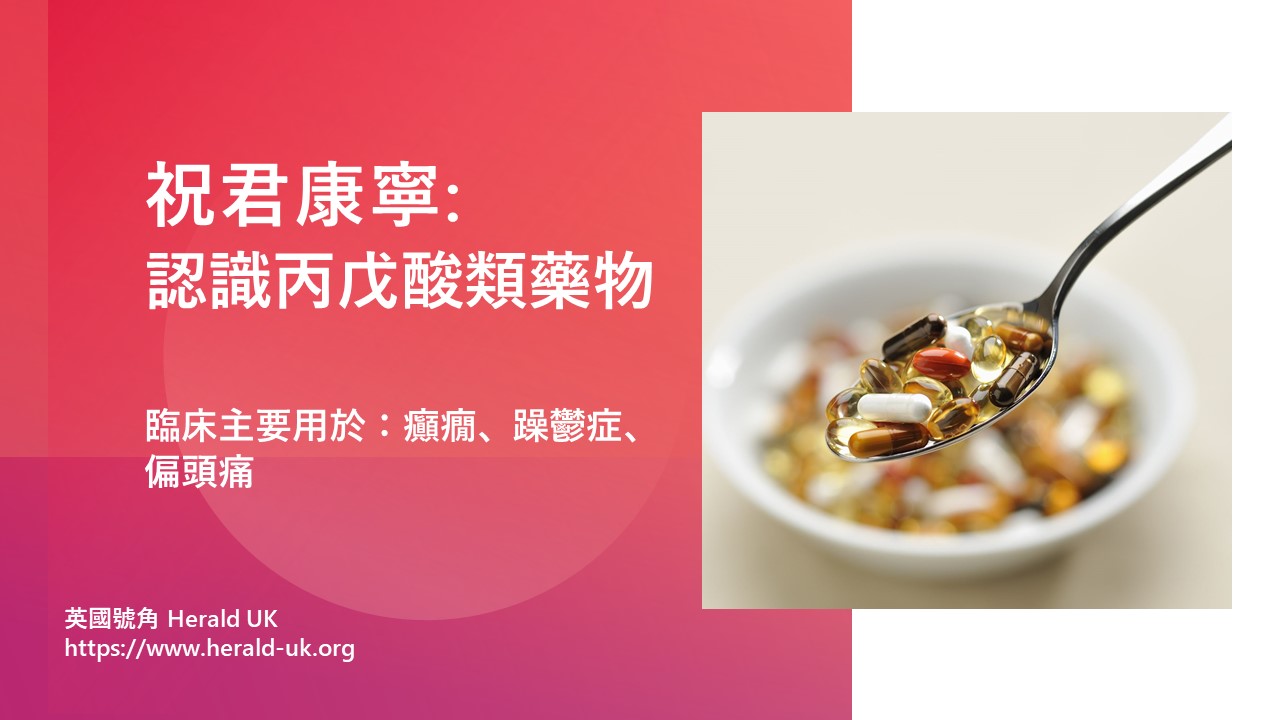 丙戊酸類藥物有丙戊酸鈉(Sodium Valproate)及丙戊酸(Valproic Acid),臨床主要用於: