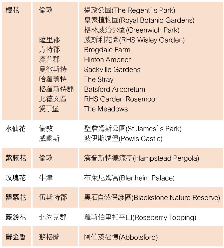 英國有不少賞花的熱門地點,從英格蘭到蘇格蘭,百花爭妍鬥麗,競相綻放,編織成一片又一片色彩斑斕的花海,包括櫻花、鬱金香、水仙花、紫藤花、玫瑰花等,絢麗醉人,美不勝收。