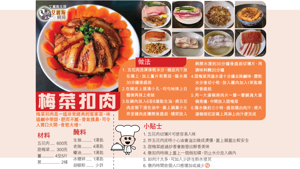 - 3. 甜梅菜經過炒香會散發出鮮香美味