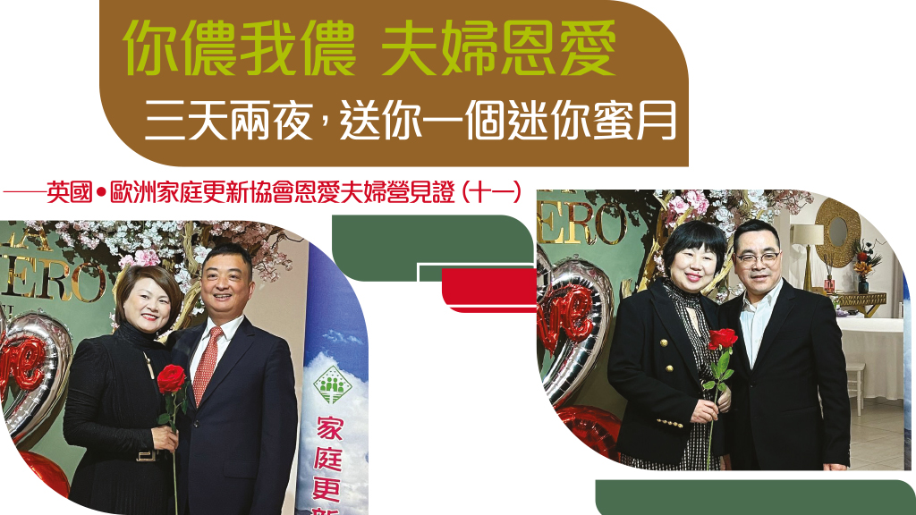 我們夫婦在意大利南部龐貝教會帶職服侍20多年,真的筋疲力盡。有幾次信徒夫婦吵架我半夜要過去「救火」,所以夫妻事工一直掛在心上。在英國歐洲家新協助下,我們教會曾經舉辦一次恩愛夫妻營,效果很理想,參加者生命多有改變。